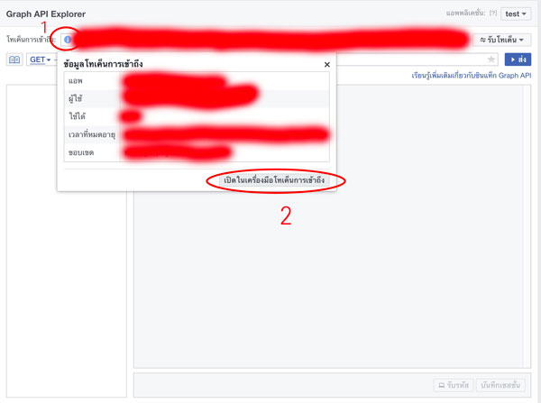 คลิก รับโทเค็น และกดเลือก "รับโทเค็นการเข้าถึงเพจ"